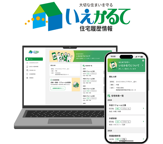 国土交通省推奨のツール「いえかるて」により、過去の診断や工事履歴、管理状況などをスマートに見える化し、システム一元管理!