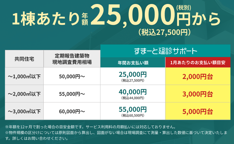一般的な管理委託では、家賃収入の3~10%の手数料に、入居者管理と基本的な建物管理が含まれます。建物管理だけで見ても月に数万円の管理費用がかかることになりますが、アステックペイントの「すまーと建診サポート」は建物管理に特化したサービスで年額25,000円(税別)〜となっておりますので、月々の建物管理に充てる費用をコストカットしながら、専門性の高い建物管理を受けることが可能になります。