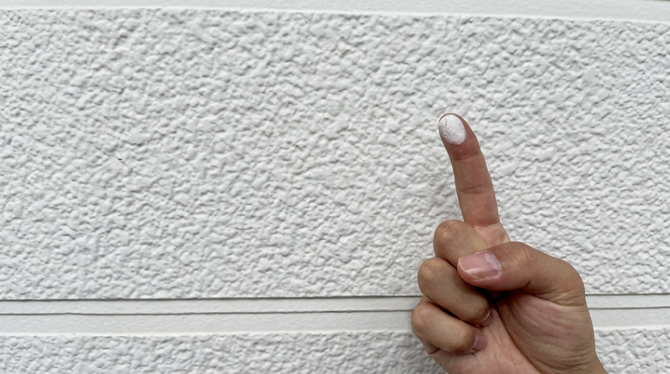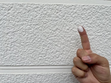 | チョーキング(白い粉) | ![]() | 指で触ると白い粉が付く現象 塗膜が紫外線などで分解され、保護機能が大きく低下している状態 |