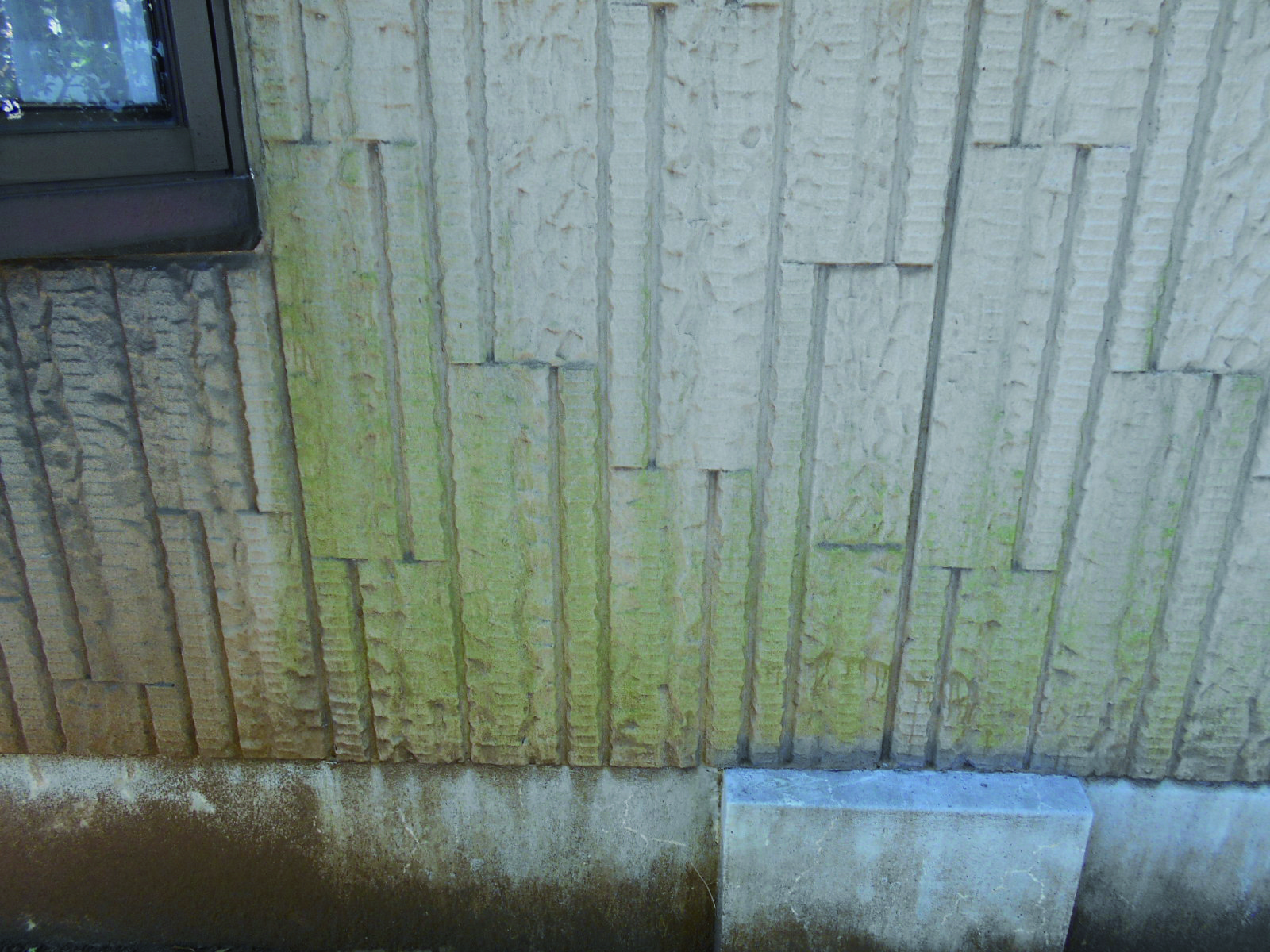 | カビ・藻・コケの発生 | ![]() | 外壁表面に緑色・黒色の汚れが付着しており、日当たりが悪く湿気がこもりやすい箇所に発生しやすい状態 |