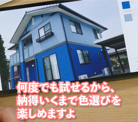 建物全体の配色バランスを視覚的に確認できるため、塗装後の仕上がりイメージをリアルに把握できます