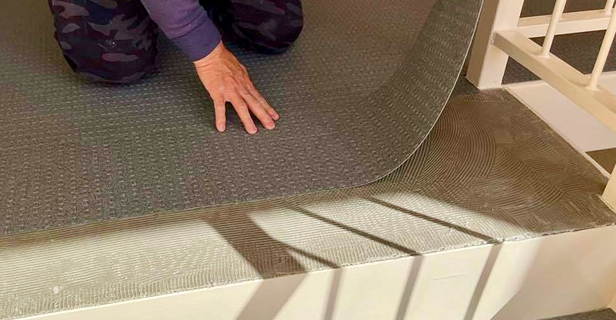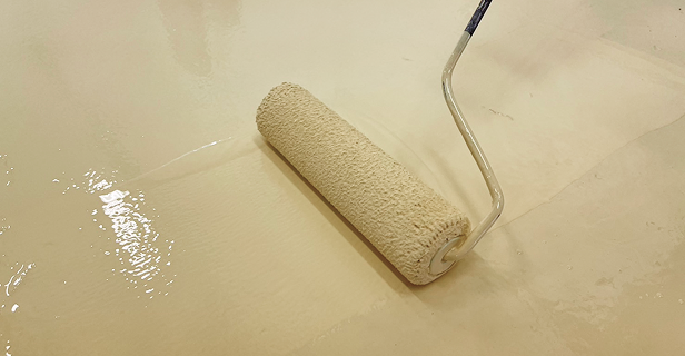 長尺シートを貼り付けることで、防音性・防滑性・防水性を向上します。塗装に比べて長持ちします。